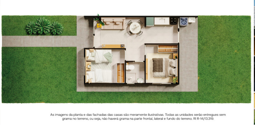 Aqui, a casa própria ganha vida com ambientes funcionais e bem distribuídos. As unidades possuem dois quartos, área de serviço coberta e não são geminadas, oferecendo mais privacidade e liberdade.