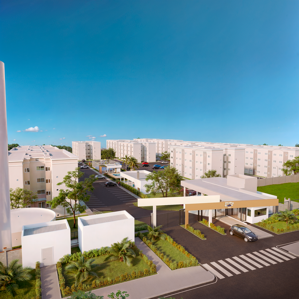 O Prime Clube conta com 12 torres (térreo + 3 andares) e 384 apartamentos, sendo 8 unidades por pavimento. As plantas são de 2 quartos com suíte reversível, proporcionando mais privacidade aos moradores. Outra funcionalidade destacada são os ambientes integrados entre a sala e a cozinha, um projeto que visa oferecer o melhor em conforto e acabamento, com a qualidade da Realiza Construtora. As metragens dos apartamentos tipo são de 42,81 m², enquanto as unidades com garden, que possuem fechamento em muro, têm 51,62 m². Cada apartamento conta com uma vaga de garagem.